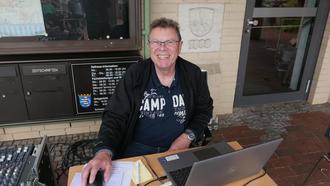 Hausmeister Günter Mengel betreute das Fest und sorgte für den passenden Einsatz der Musikstücke für die teilnehmenden Gruppen.