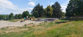 Der Pumptrack hat eine asphaltierte Fahrfläche von etwa 410 m2 und ist konzipiert für Einsteigerinnen und Einsteiger als auch für fortgeschrittene Fahrerinnen und Fahrer.