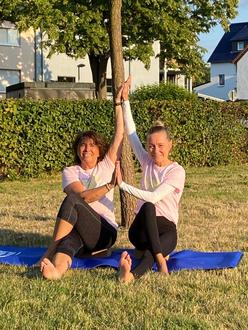 In den Sommerferien startet der HNA-Yogasommer mit Hiltrud Müller (l.) und Anne Gabrys in Vollmarshausen, bei dem die Teilnehmenden wieder unvergessliche Yogastunden unter freiem Himmel genießen können.