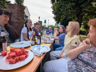 Am 4. Juli trafen sich bei bestem Sommerwetter 22 ukrainische und deutsche Mitbewohner aus Lohfelden zum gemeinsamen Start in die Sommerferien. Diese Gruppe kennt sich nun bereits seit dem Beginn des Angriffskrieges Russlands auf die Ukraine. Wöchentlich trifft man sich zum Austausch, zur Ermutigung und zum Zuhören. Vor Ort sind immer ehrenamtliche Helfende aus Lohfelden, die ihre Zeit spenden, um individuell zu unterstützen.