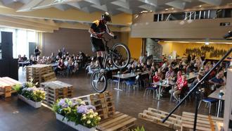 Im Rahmenprogramm sorgte das Fahrradtrial-Team, Jan Salzmann und Tobias Nehler (Zweiter und Dritter der Norddeutschen Meisterschaften 2024 im Fahrradtrial) von “Bikes in Motion” bei fetzigen Beats für Nervenkitzel, als sie über Europaletten fuhren, sprangen oder auf die Bühne „hüpften“.
