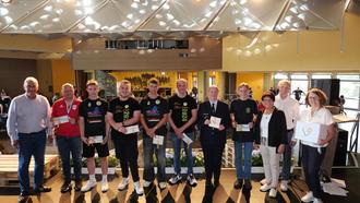 Trainer Janis Löber, Julian Schmidt und Max Jahn, Betreuer Markus Schmidt