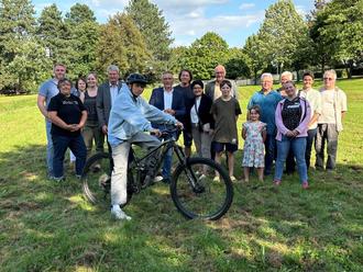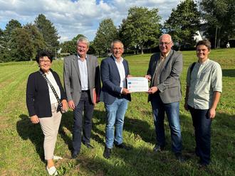 Im Rahmen eines Kinder- und Jugendprojektes plant die Gemeinde Lohfelden die Errichtung einer Pumptrackanlage. Da das Projekt innerhalb des LEADER-Programms der Region Kassel-Land e.V. mit Mitteln der Europäischen Union und des Landes Hessen gefördert wird, trafen sich nun Landrat Andreas Siebert, Lohfeldens Bürgermeister Uwe Jäger, Peter Nissen vom Servicezentrum Regionalentwicklung und Jonas Jungesblut, Regionalmanager, zur Übergabe des Förderbescheids. "Ich freue mich, den Förderbescheid für ein Projekt übergeben zu können, welches insbesondere jungen Menschen in Lohfelden zugutekommt", so Landrat Andreas Siebert bei der Übergabe vor Ort.