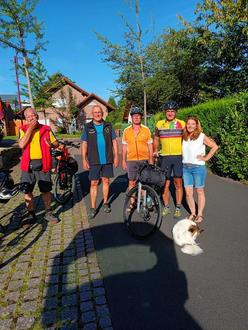 Mit dem Rad nach Berg im Drautal fuhren (v. l. n. r.) Joachim Derfin, Klaus Sturm, Horst Kühn und Roman Kopecny. Simone Kopecny (r.) verabschiedete die Gruppe in Lohfelden.