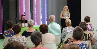 Louisa Theis begrüßt das Publikum und heißt die Autorin willkommen.