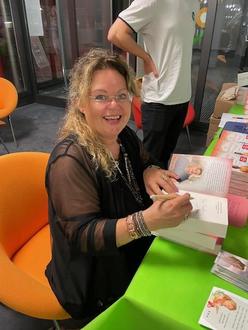 Petra Durst-Benning signiert Bücher ihrer Leserinnen und Leser.