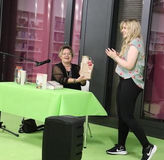 Gegen 21.30 Uhr kam Durst-Benning zum Ende und bekam als kleines Dankeschön von Louisa Theis (kommissarische Leiterin der Bücherei) ein Präsent überreicht. Das Feedback des Publikums war eindeutig: Eine Durst-Benning-Lesung ist humorvoll, unterhaltsam und sehr empfehlenswert – selbst, wenn man normalerweise keine historischen Romane liest.