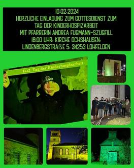 Um ein Zeichen der Solidarität und der Verbundenheit zu setzen, erstrahlen am 10.02.2024 die Ochshäuser, die Crumbacher und die Vollmarshäuser Kirche sowie die Autobahnkapelle in grün.