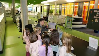 In der Ausleihe werfen die Kinder einen Blick hinter die Kulissen.