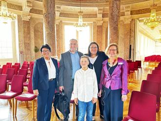 Auch die ursprünglich aus der Republik Moldau stammende Familie Rau aus Lohfelden wohnte der Einbürgerungsfeier bei. Vater Andrei Rau, Ehefrau Natalia Rau und Sohn Platon Rau freuten sich sehr darüber, ihre Einbürgerungsurkunden entgegennehmen zu dürfen. „Mit der Einbürgerung bekenne ich mich ganz klar zu meinem Heimatort Lohfelden. Außerdem bringt die Einbürgerung sowohl persönliche als auch berufliche Vorteile mit sich“, sagte Andrei Rau. Als Deutscher Staatsbürger dürfen er und seine Ehefrau nun künftig an allen Wahlen auf Bundes-, Landes- und Kommunalebene teilnehmen und sich selbst wählen lassen. Außerdem genieße er und seine Familie ab sofort Freizügigkeit innerhalb der EU, sagte er weiter. Erste Beigeordnete der Gemeinde Lohfelden, Bärbel Fehr, die den Feierlichkeiten in Wiesbaden ebenfalls beiwohnte, gehörte zu den ersten Gratulanten und freute sich sehr über die Einbürgerung der seit vielen Jahren in Lohfelden beheimateten Familie.