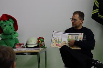 Feuerwehrmann Boris Fiegand kam gemeinsam mit dem kleinen Feuerwehr-Drachen Grisu zum Vorlesen.