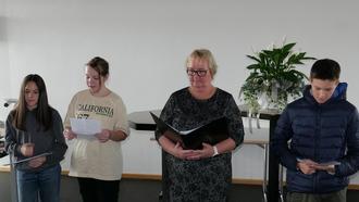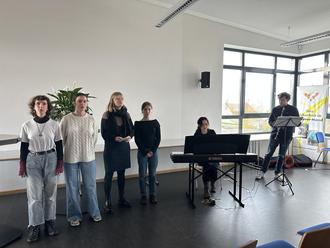 Im Anschluss daran wurde zum zweiten Mail eine „Zentrale Gedenkveranstaltung“ im Feuerwehrhaus durchgeführt. Gemeindevertretervorsitzender Norbert Thiele begrüßte alle Gäste der Veranstaltung. Er sagte: „Wir gedenken heute der unzähligen Männer, Frauen und Kinder, die Opfer von Krieg und Gewaltherrschaft, von Völkermord und Rassenwahn, von Terror und Vertreibung wurden. Wir erinnern an die dunkelsten Zeiten deutscher Geschichte, an die beiden Weltkriege und die Nazi-Diktatur, wir erinnern an ein Leid und ein Grauen, für die es im Grunde keine Worte gibt. Und wir gedenken derer die aktuell in der Ukraine und in Israel Opfer von Terrorismus und Gewaltherrschaft ausgesetzt sind.“ Würdevoll umrahmt wurden die Volkstrauertags-Veranstaltung im Feuerwehrhaus vom Ensemble des Theaterstücks „… und der Regen rinnt“ unter der Leitung von Maria Radzikhovskiy.
