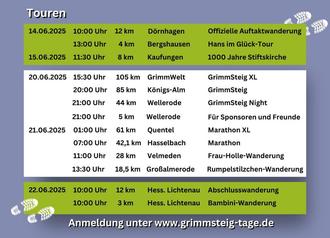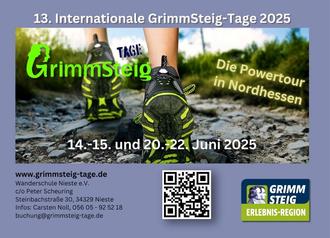 Unter dem Motto „GrimmSteig-Tage NEU“ in zwei Schritten, 1. Schritt 2025, 2. Schritt 2026, starten wir mit euch in das kommende Wanderevent.