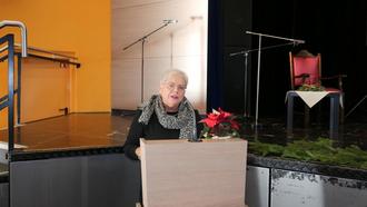 Karin Kuhn machte die Seniorinnen und Senioren auf den von der AWO zur Verfügung gestellten Weihnachtsstollen aufmerksam und führte sehr gekonnt durch das Programm, wobei sie die Gäste immer wieder mit interessanten Informationen zu den einzelnen Programmpunkten versorgte.