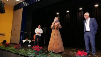 Märchenhaft ging es beim Auftritt der Märchenerzählerin Andrea C. Ortolano zu, die dieses Jahr das Märchen „Frau Holle“ zum Besten gab. Tatkräftig zur Seite stand ihr dabei Gemeindevertreter Armin Brethauer als der „Ofen“ und Bürgermeister Uwe Jäger als der „Apfelbaum“. Die Vorführung riss alle Besuchenden sehr mit und es blieb kein Auge im Saal trocken vor Lachen.