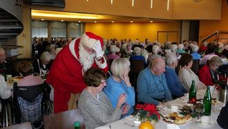 Auch der Besuch des Weihnachtsmannes Arndt Grodzicki, der durch die Reihen stapfte und kleine Schokoweihnachtsmänner an die Gäste verteilte, kam wieder sehr gut bei den Seniorinnen und Senioren an.