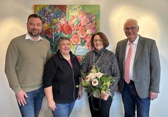 Außerdem gratulierten der Jubilarin für den Personalrat die Vorsitzende Lena Steffek-Herbold sowie als ihr Vorgesetzter Kai Hast, Leiter des Fachbereiches 1 Verwaltung und Ordnung. Sie schlossen sich den Glückwünschen des Rathauschefs an, überreichten ebenfalls Präsente und bedankten sich bei der Jubilarin für deren Einsatz, das positive Bild der Gemeinde Lohfelden weit über die Grenzen hinaus zu tragen. Die Jubilarin bedankte sich für die stets sehr gute kollegiale Zusammenarbeit während der vergangenen 25 Jahre und betonte, dass ihr die bisherigen Dienstjahre bei der Gemeinde Lohfelden stets viel Freude bereitet hätten. „Ich gehe noch heute jeden Tag gern ins Rathaus“, sagte sie und betonte, dass ihr ihre Kolleginnen und Kollegen sowie die Gemeinde Lohfelden im Lauf der Jahre sehr ans Herz gewachsen seien.