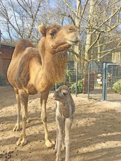 Dromedarstute Jacqueline mit Anfang Februar geborenem Stutfohlen Junah.