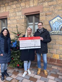 Martin Buckel, Bauleiter der Baumann Projekt GmbH und Jill Krauß, Geschäftsführerin von der Baumann Rohstoff-Recycling GmbH (rechts), überreichen die Spende an Silvana Dähne vom Kinderschutzbund.
