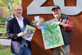 Zoodezernent Jochen Silbernagel und Zoodirektor Dr. Jens-Ove Heckel freuen sich über die Würdigung im aktuellen „medizini“-Magazin.