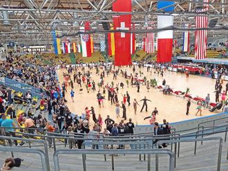 Vom 12. bis zum 15. Mai fand in der Frankfurter Eissporthalle zum 48. Mal die Tanzsport-Großveranstaltung „Hessen Tanzt“ statt. Insgesamt 2174 Turnierteilnahmen wurden von 1257 Teilnehmer:innen aus 26 Ländern, die sich auf vier Kontinente verteilen, durchgeführt. Das besondere an „Hessen Tanzt“: Die gesamte Fläche des Eisstadions ist in bis zu acht Einzeltanzflächen aufgeteilt, auf denen parallel und gleichzeitig die Turniere zu einer Musik getanzt werden.
