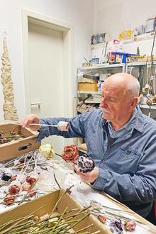 Künstler Martin Lorenz bei der Arbeit an der Installation „Happy Birthday Landau“.