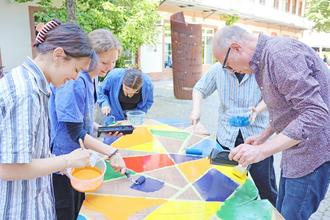 Schön bunt: der Schreibtisch für künftige Outdoor-Sprechstunden von Oberbürgermeister Dominik Geißler.