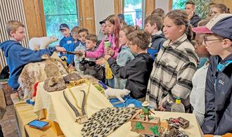 Viertklässler testen ihr Wissen an der Station „Bedrohung der Artenvielfalt“.