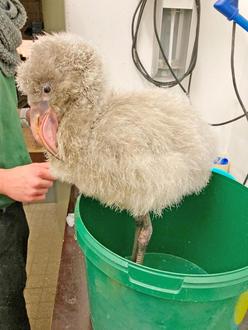 Landau. Es wächst und wächst und hat doch noch nichts von seiner anfänglichen Niedlichkeit eingebüÃt: das Flamingoküken, das seit dem 20. Oktober mit viel Aufwand und Fürsorge vom Team des Vogelreviers des Zoo Landau in der Pfalz aufgezogen wird. Als einziges Küken bei insgesamt fünf brütenden Flamingopaaren zog es die Aufmerksamkeit aller brutgestimmten Elterntiere auf sich und geriet dabei zwischen die Fronten. Um das Ãberleben des Kükens zu sichern, musste es am zweiten Lebenstag in die Handaufzucht genommen werden. Seitdem hält es die Vogelpfleger, die aus anderen Revieren unterstützt werden, auf Trab. Inzwischen ist zwar kaum noch aufwändige Fütterung per Hand nötig, aber tägliche Spaziergänge, um das Küken gesund und fit zu halten. Auf der Suche nach einem genderneutralen Namen kam das Tierpflegeteam auf Filou â denn das Geschlecht des Jungvogels wird erst die genetische Untersuchung einer Federprobe enthüllen. Bis auf Weiteres wird das Tier noch hinter den Kulissen gehalten werden. Solange es noch sein Kükengefieder trägt, ist es nicht möglich, den Jungvogel bei den momentan herrschenden Temperaturen auf die AuÃenanlage zu setzen. So genieÃt er oder sie noch die ganz besondere Aufmerksamkeit, die täglichen Spaziergänge und Streicheleinheiten des Tierpflegeteams. (per)