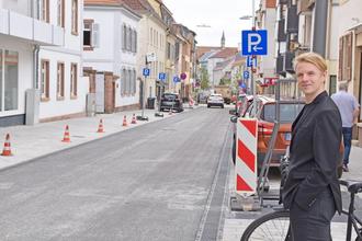 Verkehrsdezernent Lukas Hartmann in der Königstraße: Die Bauarbeiten im südlichen Straßenabschnitt sind so gut wie abgeschlossen; die Durchfahrt frei.