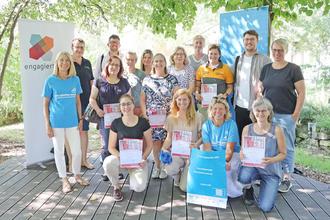 Beigeordnete Lena Dürphold (vordere Reihe, 1. v. l.) Ehrenamtsbeauftragte Angelika Kemmler (2. Reihe, 1. v. l.), Kirsten Korte vom Verein Zukunft Metropolregion Rhein-Neckar (vordere Reihe, 2. V.r.) und die Verantwortlichen der 13 Landauer Projekte freuen sich schon sehr auf die Freiwilligentagen der Metropolregion Rhein-Neckar.