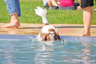 Im Freibad am Prießnitzweg gibt‘s zum Saisonabschluss Abkühlung für des Menschen besten Freund.