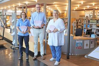 Die Bibliotheksleiterinnen Amelie Löhlein (links) und Sabine Schäfer freuen sich gemeinsam mit Bürgermeister Maximilian Ingenthron auf die Büchereitage.