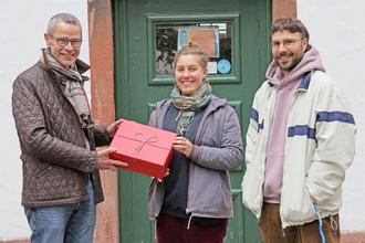 Bürgermeister Dr. Maximilian Ingenthron (links) und das Team der Streetwork (hier Leonie Lobbe und Alexander Komm) freuen sich auf viele gefüllte Schuhkartons.