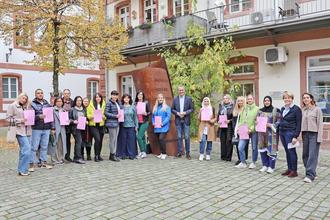 Landau. Seit gut einem Jahr ist die Volkshochschule Landau als Trägerin für Integrationskurse vom Bundesamt für Migration und Flüchtlinge (BAMF) zugelassen – und jetzt konnten die ersten Kursteilnehmer:innen ihre Abschlusszertifikate entgegennehmen: Bürgermeister Dr. Maximilian Ingenthron und VHS-Leiterin Sigrid Gensheimer überreichten die Zeugnisse im Beisein von Tetyana Savka, Regionalkoordinatorin für Integration beim BAMF, an die 17 erfolgreichen Absolvent:innen.