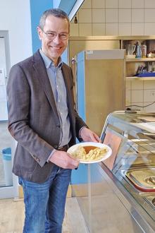 Schupfnudeln mit Sauerkraut gab es beim Testessen am OHG für die Schüler:innen – und für den „anonymen Gast“, Schuldezernent Dr. Maximilian Ingenthron.
