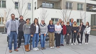 Mitarbeiter:innen des Bethesda Landau gemeinsam mit ihren neugiereigen Besucher:innen von der Gebrüder-Ullrich-Realschule plus.