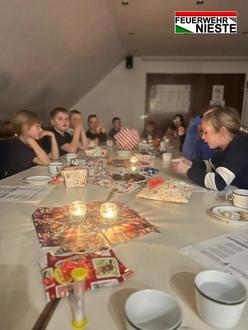 Am letzten Donnerstag vor Weihnachten fand die Weihnachtsfeier der Kinderfeuerwehr Nieste statt. Die 14 anwesenden Kinder konnten sich mit leckerem Weihnachtsgebäck stärken und hatten viel Spaß mit verschiedenen Spielen um vor allem beim Singen! Mit einem kleinen Geschenk konnten die Kinder dann zum Abschluss glücklich in die Weihnachtspause entlassen werden.