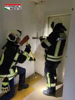 Der praktische Teil fand in einem zum Abriss freigegebenen Haus statt, sodass wir erfreulicherweise unter realistischen Bedingungen an echten Türen die verschiedenen Techniken üben konnten.
