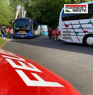 Darüber hinaus wurde die Einsatzabteilung von Kameraden der Ehren- und Altersabteilung unterstützt, die die geordnete An- und Abfahrt der Busse organisierten.