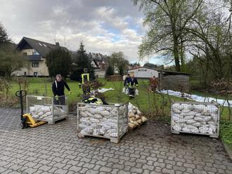 In diesem Zuge wurden die eigens für die Einlagerung beschafften Gitterboxen mit den gut erhaltenen Sandsäcken gefüllt und anschließend zum Feuerwehrhaus verbracht.