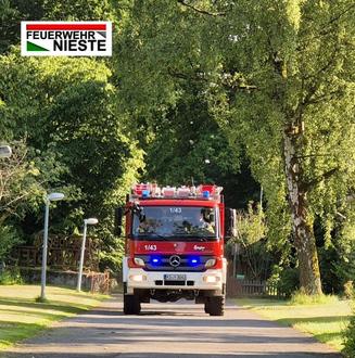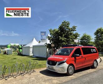 Die Feuerwehr Nieste besetzte während den GrimmSteig-Tagen 2025 erneut über 24 Stunden in 4 Schichten den Einsatzleitwagen vor Ort, im Bereich der Königs-Alm, und stellte eine Notrufbereitschaft für die Wanderer sicher - um im Bedarfsfall schnelle Hilfe organisieren zu können.