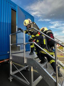 In der KW 18/2024 konnten insgesamt 8 Atemschutzgeräteträger der Feuerwehr Nieste in der mobilen Brandsimulationsanlage „Fire Dragon 9000“ der Firma Dräger auf dem Gelände des Brand- und Katastrophenschutzes des Landkreis Kassel auf dem alten Flugplatzgelände in Calden unter möglichst realistischen Bedingungen für den Ernstfall trainieren. Zur Vorbereitung galt es eigenverantwortlich ein e-Learning-Modul der Hessische Landesfeuerwehrschule zu absolvieren.