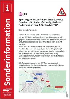 Beachten Sie auch die Aushänge an den Haltestellen.