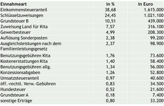 Wesentliche Einnahmen sind die Zuweisungen aus dem kommunalen Finanzausgleich