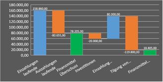 Im Finanzhaushalt, in dem der Finanzmittelfluss und der Finanzierungsbedarf der Investitionen abgebildet werden, gehen bei den ein- und Auszahlungen aus Verwaltungs- und Investitionstätigkeit von minus 787.680 € aus.