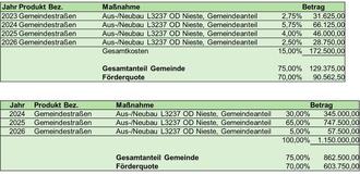 Wesentlich beschäftigen wird uns in den nächsten Jahren die Sanierung der L3237 in der kompletten Ortsdurchfahrt von Nieste. Baubeginn ist für August 2024 geplant. Man geht von einer Bauzeit von 1,5 Jahren aus.