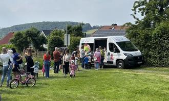 Die beiden Fördervereine der Grundschule und der KITA "Niester Zwerge" sorgten für erfrischende Getränke und Brezeln und hatten einen Eiswagen bestellt, bei dem sich jedes Kind eine Kugel Eis holen konnte.