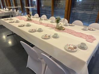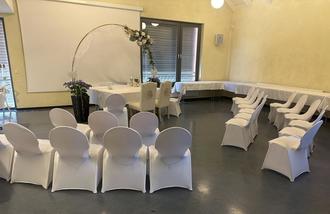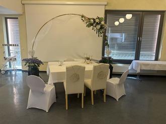Für die Trauung und die anschließende Hochzeitsfeier hatten sie das DGH in einen Hochzeitssaal verwandelt.