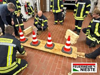 Zum Abschluss des Übungsdienstes galt es noch innerhalb der Gruppe eine "Knobelaufgabe" unter Zuhilfenahme der feuerwehrtechnischen Beladung des LF 10 zu bewältigen.